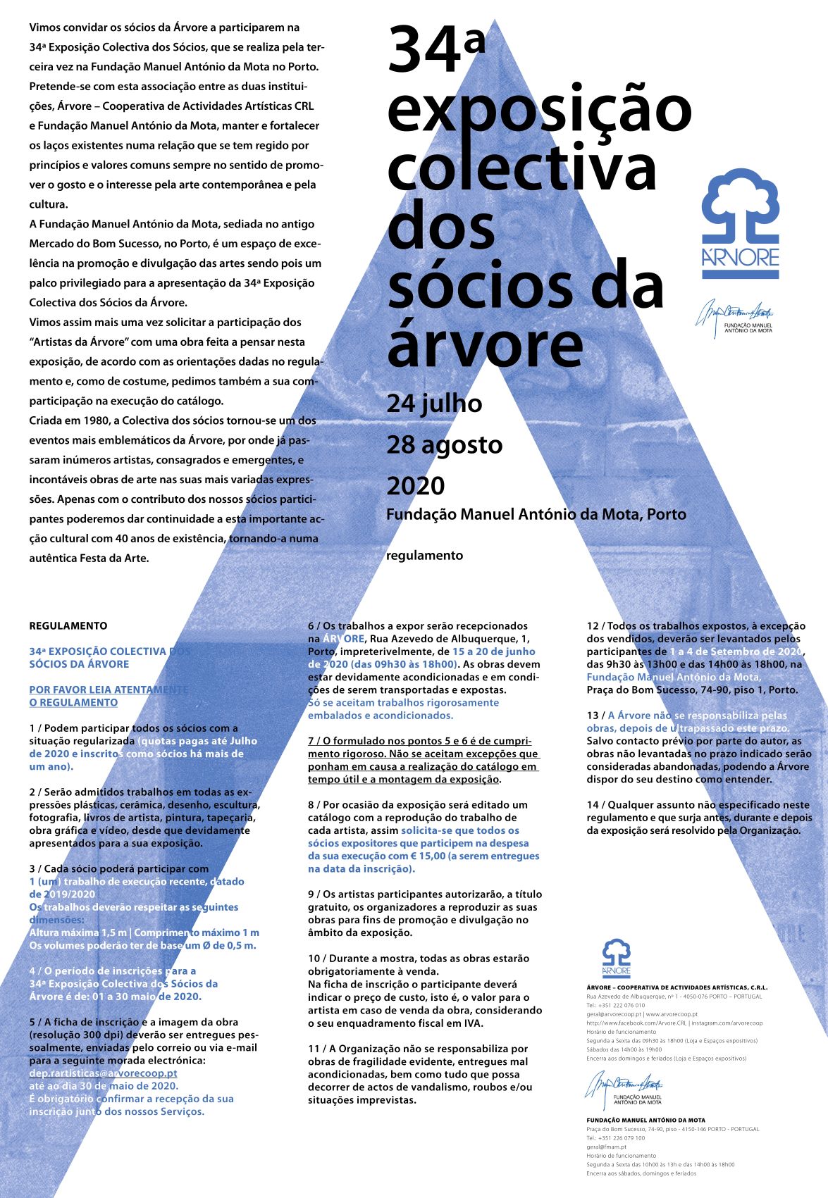 34.º EXPOSIÇÃO COLECTIVA DOS SÓCIOS DA Árvore – Cooperativa de Actividades Artísticas, CRL. *** ALARGAMENTO DOS PRAZOS DE INSCRIÇÃO E ENTREGA DE TRABALHOS *** Inscrições: até 15 de Junho Entrega de trabalhos: 15 a 25 Junho Inauguração: mantém-se a 24 de Julho INSCREVA-SE!