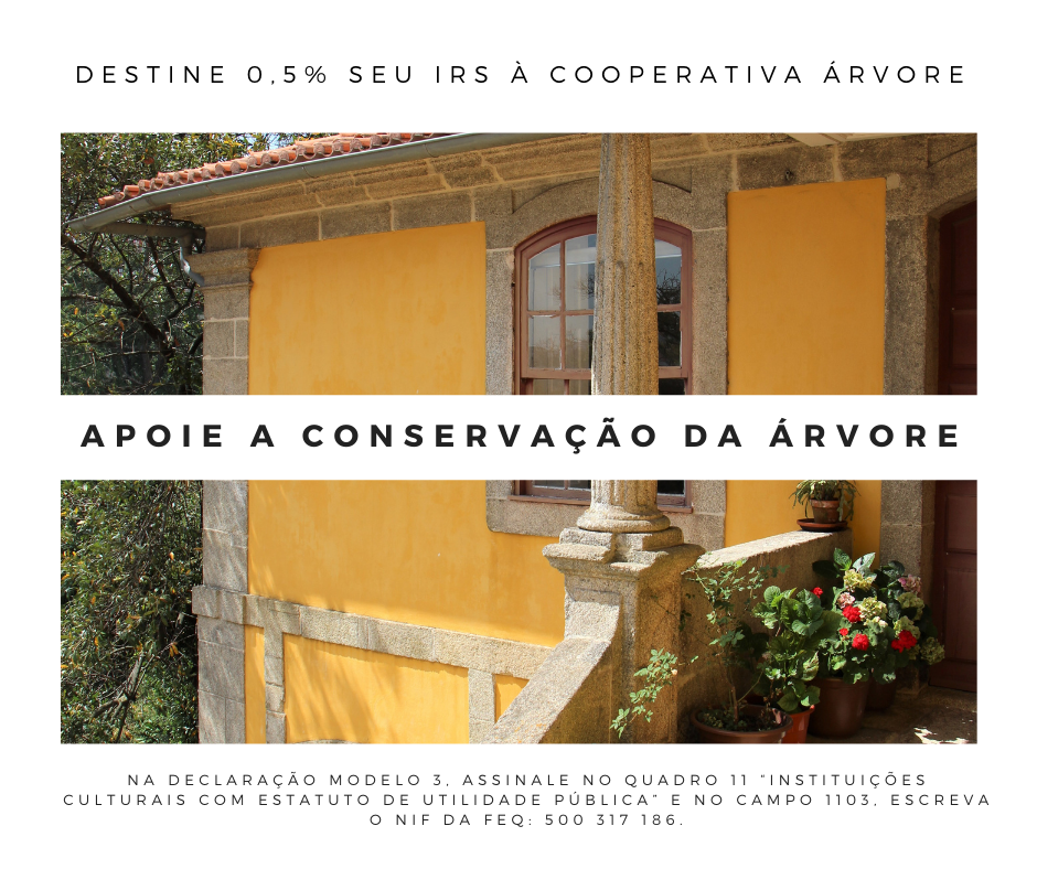 Destine 0,5% do seu #IRS à Cooperativa Árvore! Sabia que pode ajudar a #cooperativaárvore doando 0,5% do imposto de IRS que paga ao Estado? Todos os contribuintes podem consignar/doar 0,5% da colecta do seu IRS (imposto que paga ao Estado após a dedução das despesas). Basta que no preenchimento anual do IRS, na Declaração Modelo 3, […]