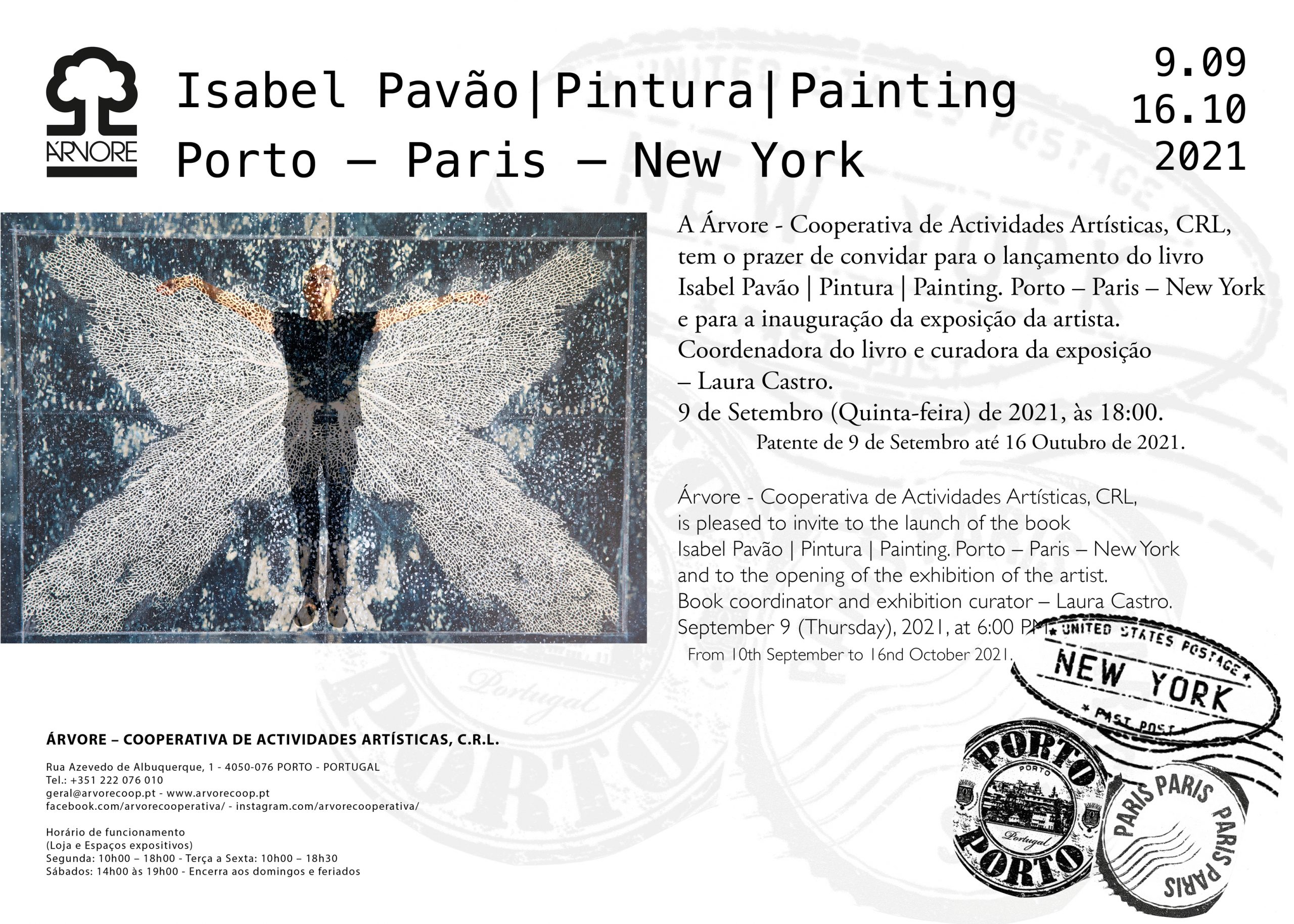A Árvore Cooperativa de Actividades Artísticas, CRL., tem o prazer de convidar para o lançamento do livro “Isabel Pavão | Pintura | Painting. Porto – Paris – New York e para a inauguração da exposição da artista.