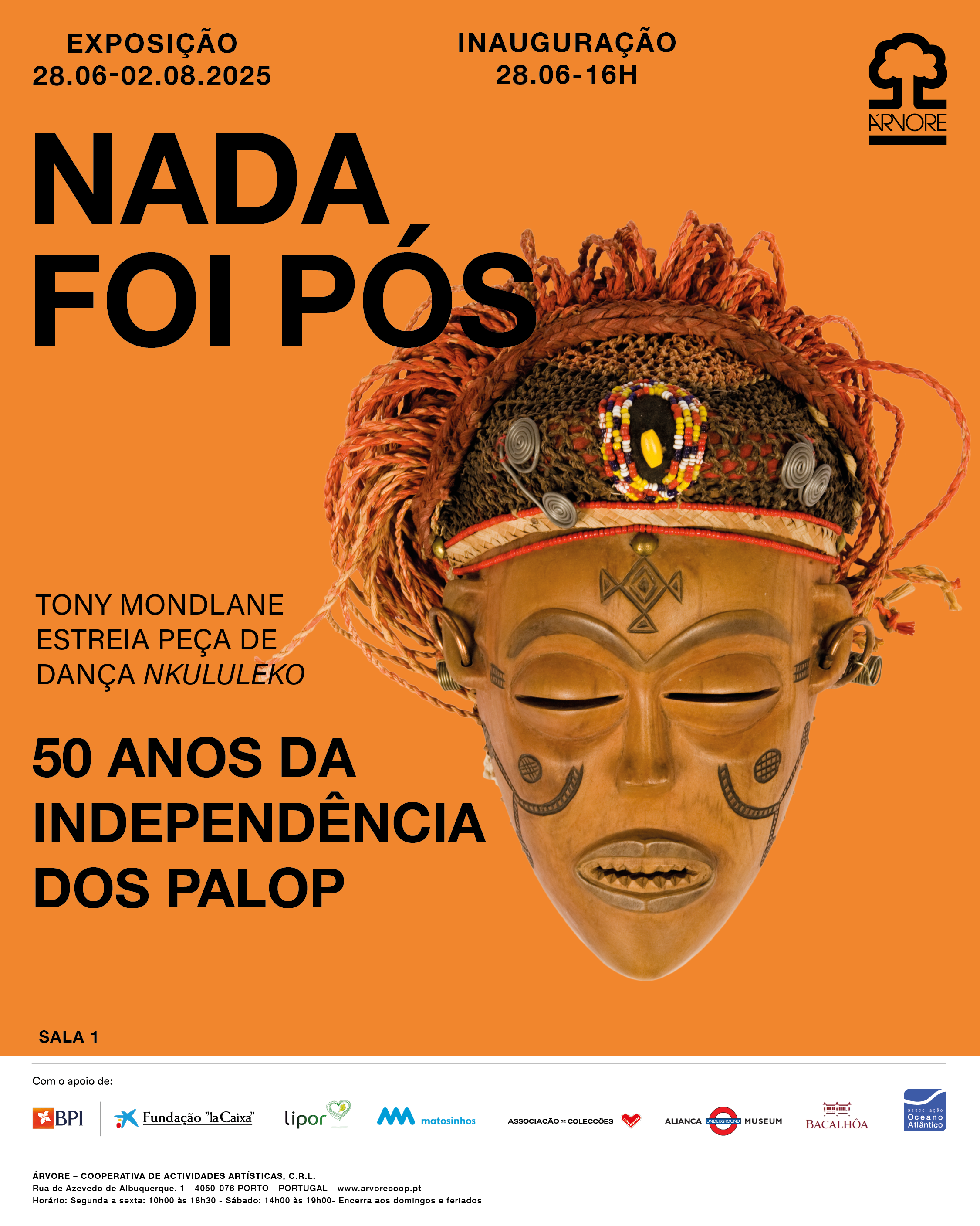 Com uma longa trajetória de apoio aos movimentos de libertação e à divulgação da Arte africana, a Árvore apresenta a exposição “Nada Foi Pós – 50 anos da Independência dos PALOP”, com o apoio da Associação de Colecções | Coleção Berardo. A mostra propõe um diálogo criativo entre dois núcleos expositivos complementares: relacionando esculturas Tshokwe, que evocam rituais ancestrais, espiritualidade e a continuidade identitária entre passado e presente; com pinturas e fotografias que realçam cinco décadas de criação artística africana através de nomes marcantes como Boaventura Nzangela Simão, Domingos Barcas, Edson Chagas, Eugénio Duarte de Lemos, Francisco Van-Dúnen (Van), Malangatana, Mário Tique, Roberto Chichorro, Samate Mulungo e Sansão Cossa.